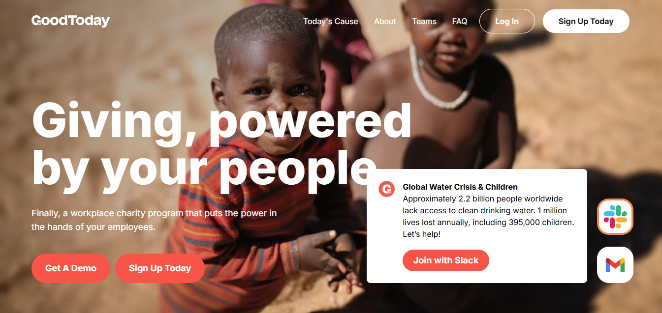 Good Today is a non-profit platform designed to make charitable giving part of your daily routine. Through email prompts and Slack integration, users donate just $0.25/day to causes they care about. With a single click, you vote where your donation goes.